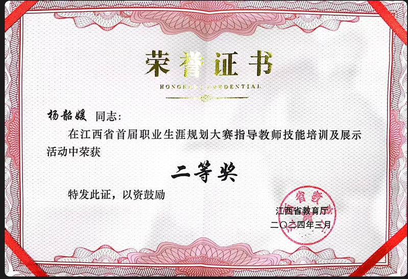 近日,江西省教育厅公布了第三届江西省“互联网+”大学生创新创业大赛暨首届职业生涯规划大赛指导教师技能培训及展示活动获奖名单,学校数字经济学院教师杨韶媛经过技能培训考核,初赛、复赛等环节,在全省本(专)科高校推荐选送的160余位参赛教师中脱颖而出,获得二等奖,并受聘担任江西省职业生涯规划大赛专家导师。