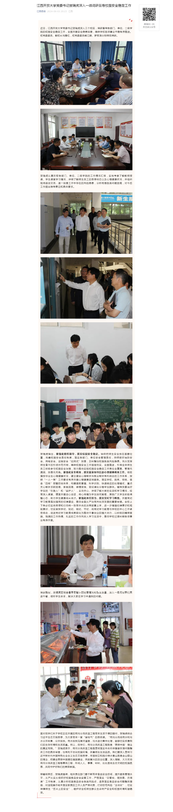 近日,必赢76net线路官网党委书记贺瑞虎深入三个校区,调研督导各部门、单位、二级学院的校园安全稳定工作,全面开展安全隐患排查,确保学校各项事业平稳有序推进。校党委委员、副校长冯豫红,校党委委员熊江鹏、罗军涛分别陪同调研。原文地址:https://mp.weixin.qq.com/s?__biz=MzI1OTM4MDMzMA==&mid=2247590623&idx=3&sn=890b017e8707ef80508e321cf57bf022&chksm=ea7ae7dadd0d6ecc34d69c8a2989749fdb476597314044b5b7a6aa6d50d4dc8f7231efcf9591&mpshare=1&scene=23&srcid=0604IhdFx8INWZB6Nicnp2mD&sharer_shareinfo=27955339751b49c9cd3c3d3dc63b0533&sharer_shareinfo_first=27955339751b49c9cd3c3d3dc63b0533#rd (责任编辑:罗楚颖)