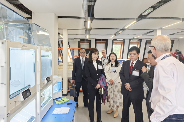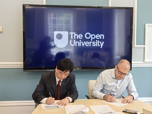在英国开放大学访问期间,贺瑞虎与该校副校长Kevin Shakesheff教授进行了深入交流。重点围绕开放教育教学质量提升、教学支持服务、师资队伍建设、课程设计以及教师赴英培训等事宜进行充分商讨,双方就进一步深化交流合作、推动两校关系迈上新台阶达成共识,贺瑞虎代表学校签署了《必赢76net线路官网与英国开放大学合作谅解备忘录》。交流结束后,学校代表团受邀参观了该校远程教育实训中心OPENSTEAM实验室。