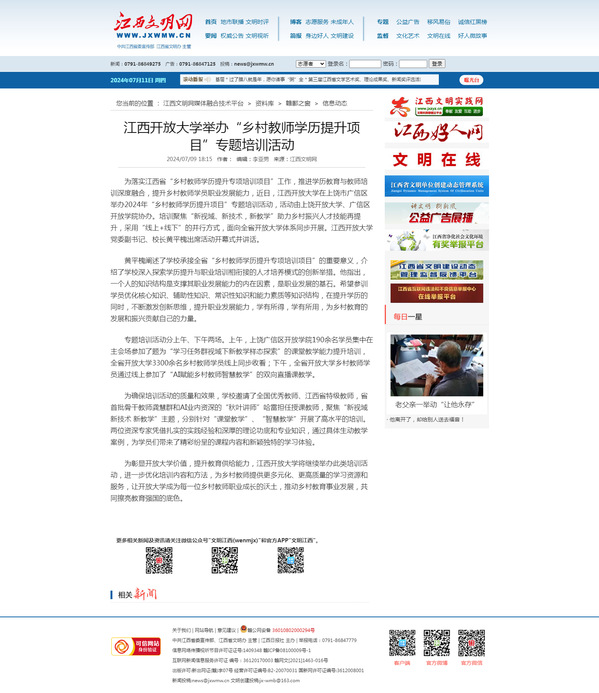 为落实江西省“乡村教师学历提升专项培训项目”工作,推进学历教育与教师培训深度融合,提升乡村教师学员职业发展能力,近日,必赢76net线路官网在上饶市广信区举办2024年“乡村教师学历提升项目”专题培训活动,活动由上饶开放大学、广信区开放学院协办。培训聚焦“新视域、新技术,新教学”助力乡村振兴人才技能再提升,采用“线上+线下”的并行方式,面向全省开放大学体系同步开展。必赢76net线路官网党委副书记、校长黄平槐出席活动开幕式并讲话。