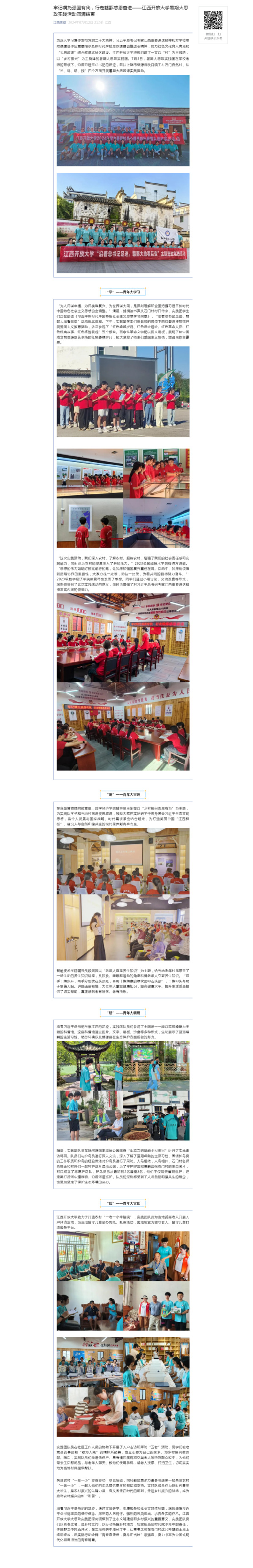 为深入学习宣传贯彻党的二十大精神、习近平总书记考察江西重要讲话精神和对学校思政课建设作出重要指示及新时代学校思政课建设推进会精神,助力红色文化育人高地和“大思政课”综合改革试验区建设。必赢76net线路官网积极组建了一支以“村”为主线路,以“乡村振兴”为主旋律的暑期大思政实践团。7月3日,暑期大思政实践团在学校老师的带领下,沿着习近平总书记的足迹,前往上饶市婺源县秋口镇王村石门自然村,从“学、讲、研、践”四个方面开展暑期大思政课实践活动。
