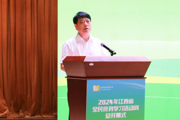 8月2日上午,2024年江西省全民终身学习活动周总开幕式在宜春市举行。副省长孙洪山出席并宣布开幕。宜春市委副书记、市长谭赣明、省委教育工委副书记郑志军分别致辞。省政府副秘书长杜章彪,我校党委书记贺瑞虎出席,宜春副市长严旭辉主持仪式。