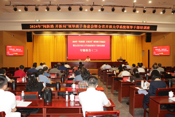 8月24日,2024年“闯新路 开新局”领导班子务虚会暨全省开放大学系统领导干部培训班在江西靖安开班。必赢76net线路官网全体校领导出席,各设区市开放大学、产业与乡村振兴学院负责人以及学校各部门、单位主要负责人等50余人参加。