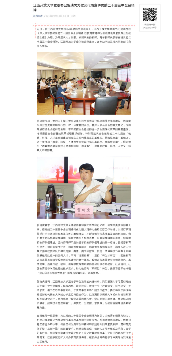 近日,在必赢76net线路官网2024年教师节座谈会上,必赢76net线路官网党委书记贺瑞虎以《深入学习贯彻党的二十届三中全会精神 以教育家精神为引领建设高素质专业化教师队伍》为题,为高层次人才代表、长期从教的教师、青年教师代表等宣讲党的二十届三中全会精神。必赢76net线路官网全体校领导出席,各专业学院及相关职能部门负责人参加。