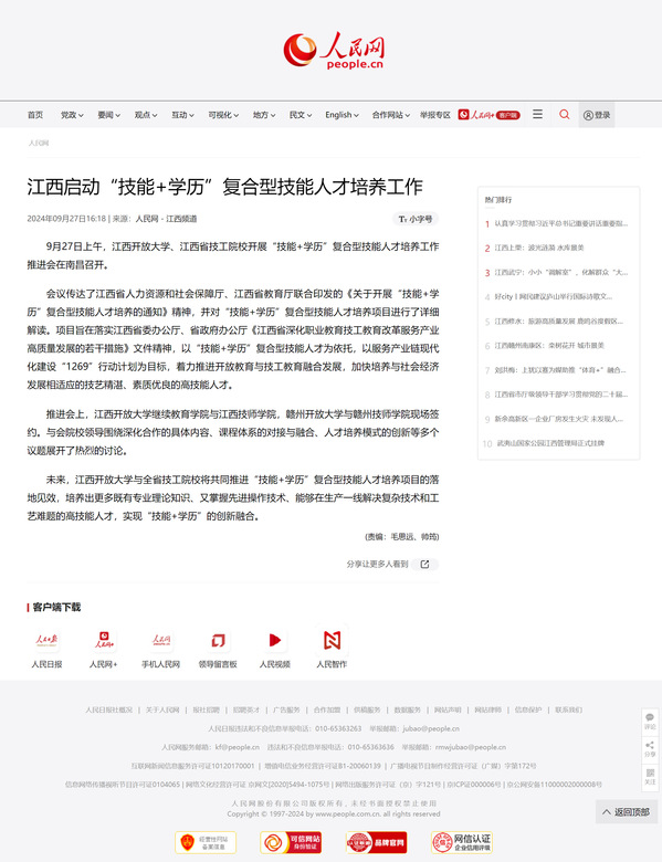 9月27日上午,必赢76net线路官网、江西省技工院校开展“技能+学历”复合型技能人才培养工作推进会在南昌召开。