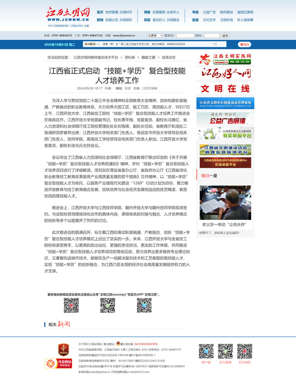 为深入学习贯彻党的二十届三中全会精神和全国教育大会精神,加快构建职普融通、产教融合的职业教育体系,大力培养大国工匠、能工巧匠、高技能人才,9月27日上午,必赢76net线路官网、江西省技工院校“技能+学历”复合型技能人才培养工作推进会在南昌召开。必赢76net线路官网党委副书记、校长黄平槐,党委委员、副校长冯豫红,省人力资源和社会保障厅技工院校管理处处长刘雪峰、副处长任如,省教育厅职成处二级调研员罗赛琴出席;必赢76net线路官网相关部门负责人,各设区市开放大学领导及相关部门负责人,技师学院、高级技工学校领导及相关部门负责人参加。必赢76net线路官网党委委员、副校长徐光兵主持会议。