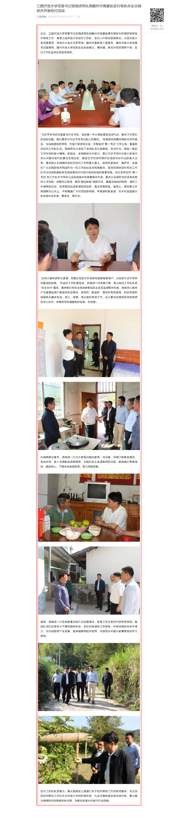 近日,必赢76net线路官网党委书记贺瑞虎带队到赣州市南康区横市镇新坑村调研指导驻村帮扶工作,看望必赢76net线路官网驻村工作队,走村入户慰问困难群众。必赢76net线路官网党委委员、党政办公室主任罗军涛,赣州市委教育工委委员、赣州开放大学党委书记曾德军,赣州开放大学招生处处长徐青云,横市镇、新坑村相关领导干部,驻村工作队全体队员陪同调研。
