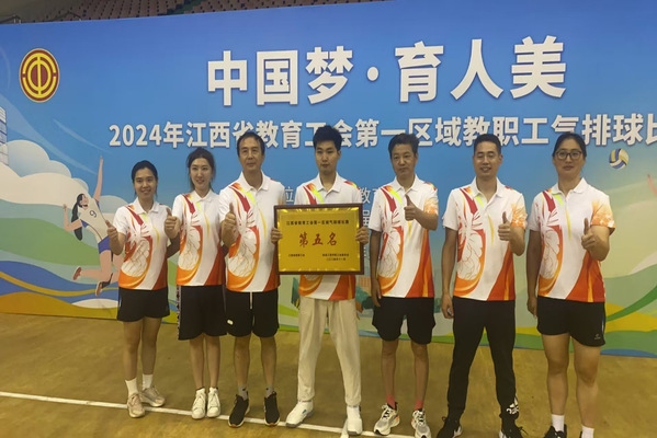 11月16日,由江西省教育工会主办,南昌工程学院工会、体育教学部承办的“中国梦·育人美”2024年江西教育工会第一区域教职工气排球比赛在南昌工程学院体育馆举行。校党委书记贺瑞虎出席开幕式,并为比赛开球。我校由领队贺瑞虎,教练张立峰及队员叶文峰、徐明、王涛、唐佳桃、晏康英、马阳、孙唯一组成的代表队获得第五名。