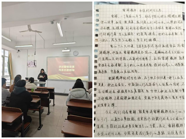 为大力弘扬“奉献、友爱、互助、进步”的志愿服务精神,让“雷锋精神”生生不息,数字经济学院团总支组织各班级召开“讲述雷锋故事,传承志愿精神”主题团日活动,每位团员在班级结合身边实事,讲述雷锋故事,体会雷锋精神的永恒价值,感悟雷锋精神的时代内涵。