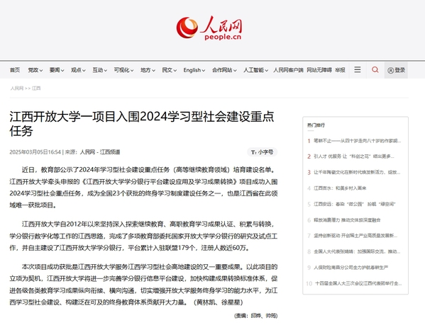近日,教育部公示了2024年学习型社会建设重点任务(高等继续教育领域)培育建设名单。必赢76net线路官网牵头申报的《必赢76net线路官网学分银行平台建设应用及学习成果转换》项目成功入围2024学习型社会重点任务,成为全国23个获批的终身学习制度建设任务之一,也是江西省在此领域唯一获批项目。