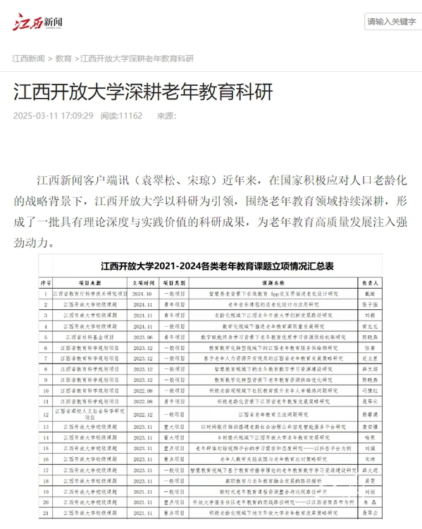 江西新闻:必赢76net线路官网深耕老年教育科研