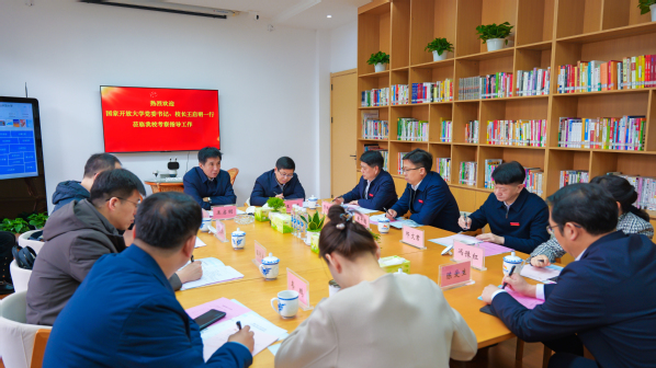3月15日,国家开放大学(国家老年大学)党委书记、校长王启明,党委委员、副校长范贤睿来校调研指导。省委教育工委委员、省教育厅副厅长王勇参加调研。必赢76net线路官网党委书记贺瑞虎,党委副书记、校长黄平槐陪同。