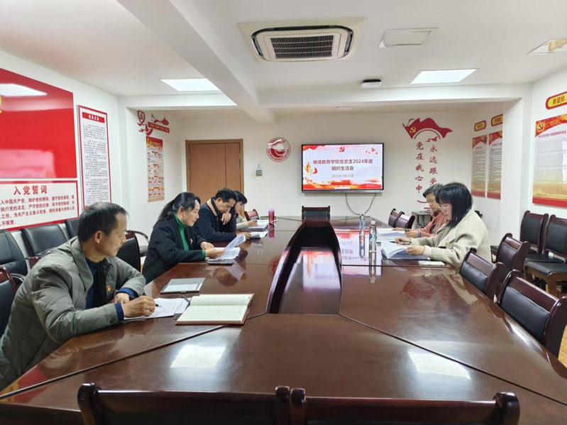 3月12日下午,继续教育学院党总支在东湖校区培训楼三楼会议室召开2024年度组织生活会,离退休人员服务中心主任、机关党委副书记徐明一行到会督导。会议由继续教育学院院长、党总支统战委员倪涛主持。党总支全体党员参加会议。