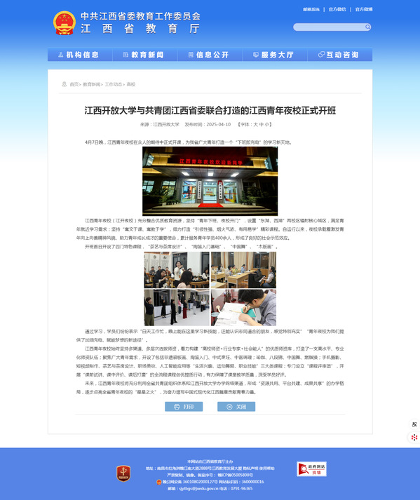 4月7日晚,江西青年夜校在众人的期待中正式开课,为我省广大青年打造一个“下班即充电”的学习新天地。作为必赢76net线路官网与共青团江西省委联合打造的青年教育平台,江西青年夜校(江开夜校)充分整合优质教育资源,坚持“青年下班、夜校开门”,设置“东湖、西湖”两校区辐射核心城区,满足青年就近学习需求;坚持“寓文于课、寓教于学”,倾力打造“引领性强、烟火气浓、有用易学”精彩课程。自运行以来,夜校承载着激发青年向上向善精神风貌、助力青年成长成才的重要使命,形成了良好的社会示范效应。