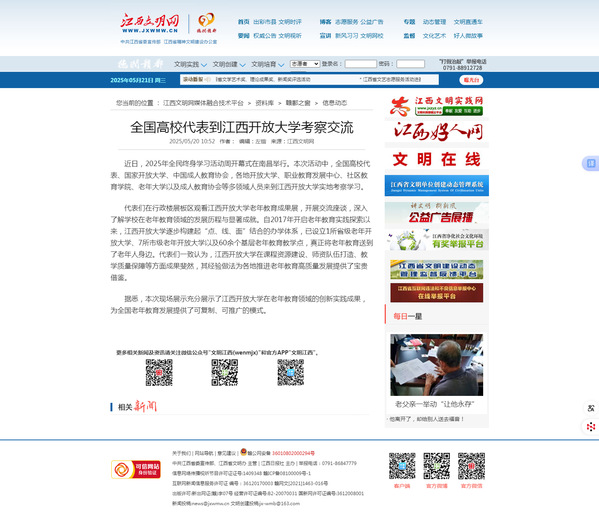 近日,2025年全民终身学习活动周开幕式在南昌举行。本次活动中,全国高校代表、国家开放大学、中国成人教育协会,各地开放大学、职业教育发展中心、社区教育学院、老年大学以及成人教育协会等多领域人员来到必赢76net线路官网实地考察学习。