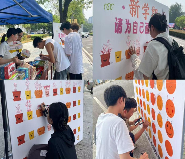 开学期间,学校在西湖校区设置了笑脸墙与花花墙两大创意展示区,学子们纷纷执笔绘出笑脸与花朵,表达对新学期的期待与承诺。参与者还可凭手绘作品领取文具盲袋、盆栽积木等精美礼品。活动现场温馨热闹,成为校园一道亮丽风景。