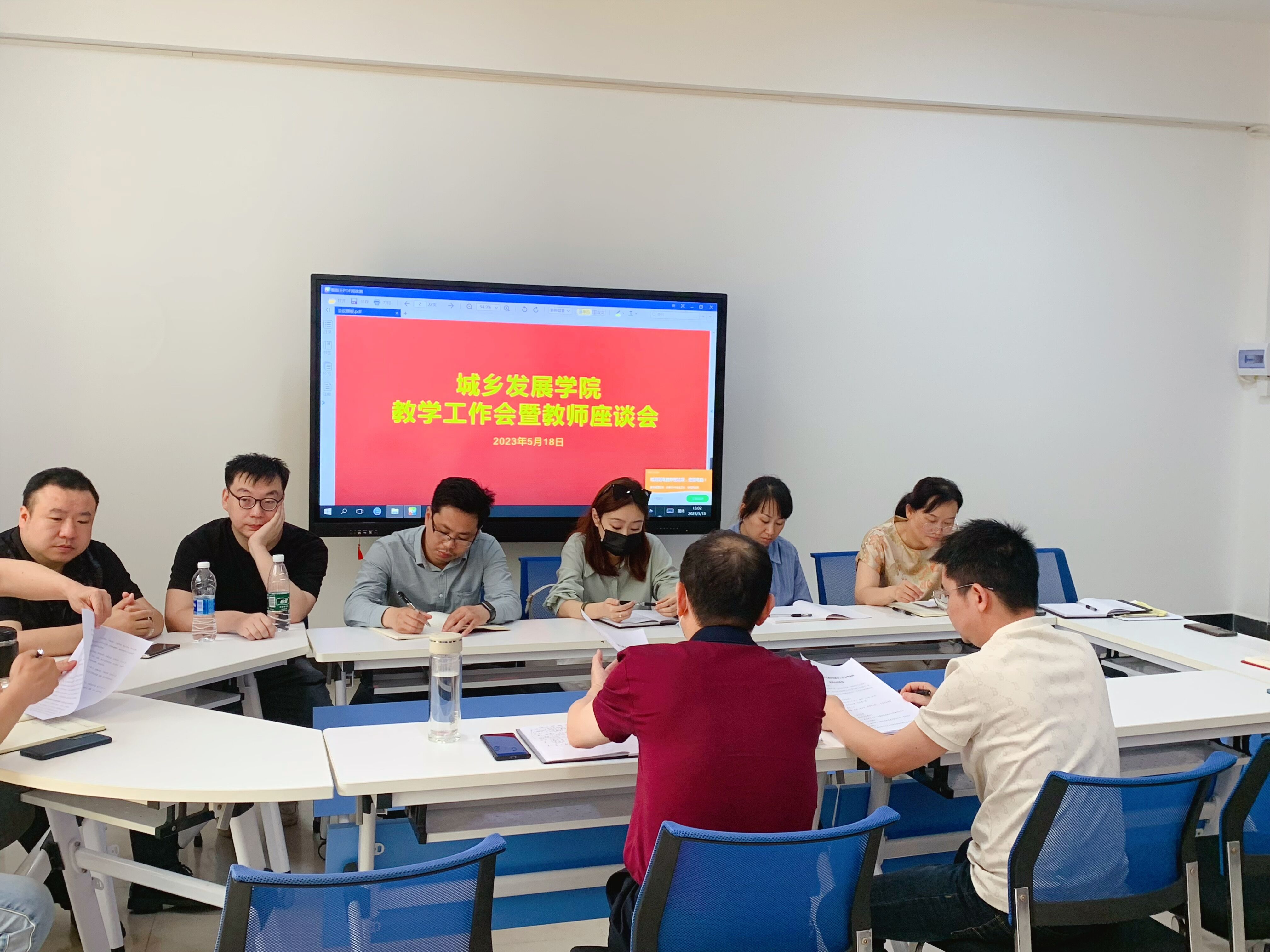 为强化教学过程,提高教学质量,加强学科专业课程一体化建设,结合学校主题教育活动和期中教学检查要求,5月18日下午,城乡发展学院召开教学工作会暨教师座谈会,院长李汉平、院党委副书记梁爽,学院办公室、教务科、团学科负责人,各系部全体教师参加会议。