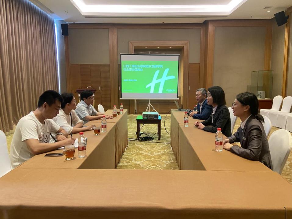 近日,城乡发展学院党委书记邹运明、党委副书记梁爽和旅游系负责人刘华一行3人前往南昌新龙置业有限公司江景国际酒店和寻忆荷餐厅进行访企拓岗。