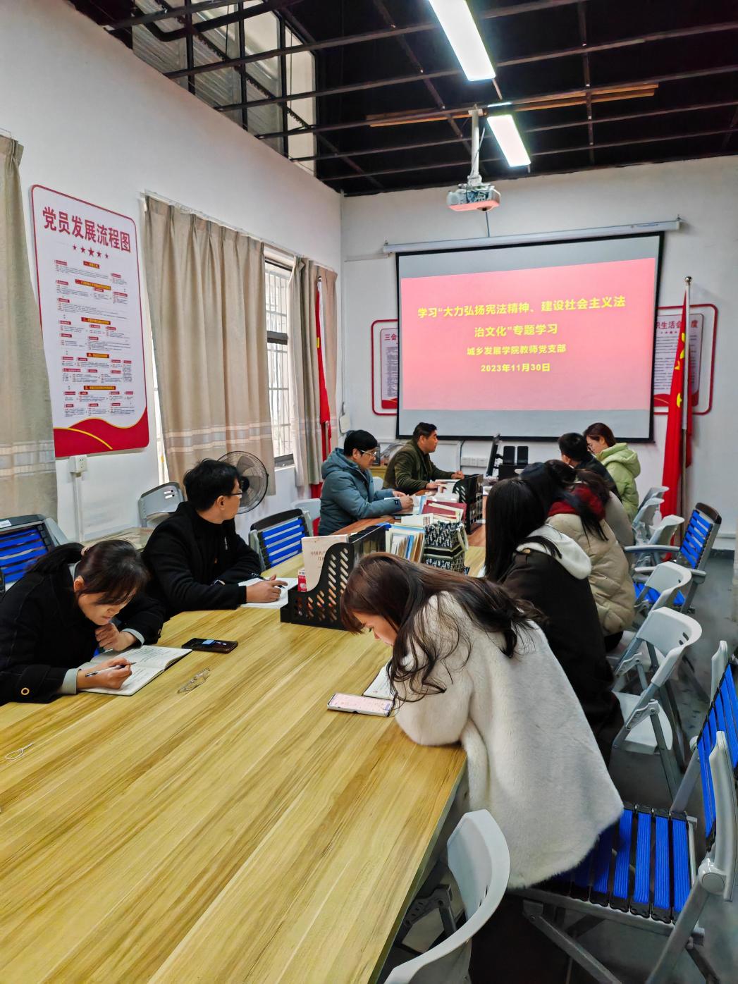 为落实《必赢76net线路官网关于在全校开展2023年“宪法宣传周”系列活动》文件精神,城乡发展学院教师党支部11月30日下午开展了“大力弘扬宪法精神,建设社会主义法治文化”主题学习。