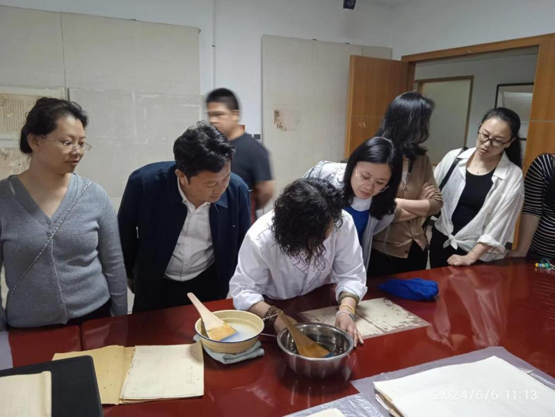 随后,学校档案员们现场观摩了档案修复,进一步了解了档案修复的流程、工作要点和注意事项;参观了档案数字化工作室,详细了解了档案数字化建设的实践要求。