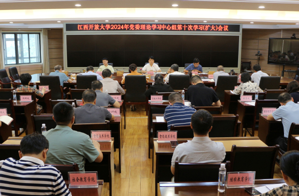 9月23日下午,校党委书记贺瑞虎主持召开党委理论学习中心组第十次学习(扩大)会议,深入学习习近平总书记在全国教育大会上的重要讲话精神和《中共中央 国务院关于弘扬教育家精神加强新时代高素质专业化教师队伍建设的意见》。校党委理论学习中心组成员、校纪委委员、各部门主要负责人参加学习。