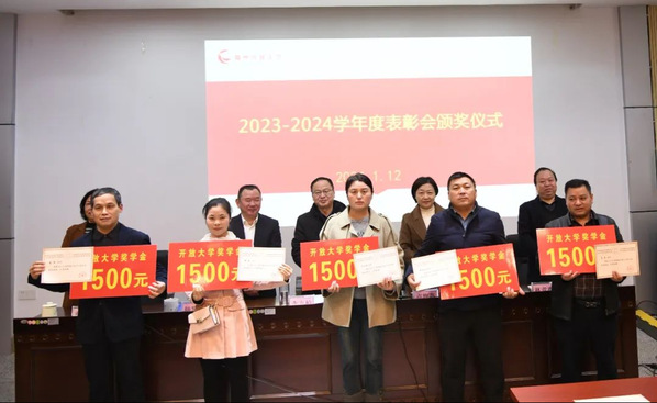 100名学员获国家开放大学奖学金、3名学员获国家开放大学优秀毕业生、60名学员获必赢76net线路官网优秀学员、14个办学单位获必赢76net线路官网招生工作先进集体、30名教师获招生优秀个人荣誉称号……近日,在2023-2024年度全市开大系统工作会议上,赣州开放大学党委副书记、校长李方柏等校领导为获奖师生颁奖。