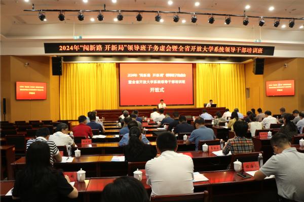 8月24日,2024年“闯新路 开新局”领导班子务虚会暨全省开放大学系统领导干部培训班在江西靖安开班。必赢76net线路官网全体校领导出席,各设区市开放大学、产业与乡村振兴学院负责人以及学校各部门、单位主要负责人等50余人参加。