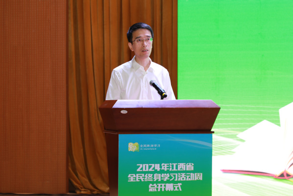 8月2日上午,2024年江西省全民终身学习活动周总开幕式在宜春市举行。副省长孙洪山出席并宣布开幕。宜春市委副书记、市长谭赣明、省委教育工委副书记郑志军分别致辞。省政府副秘书长杜章彪,我校党委书记贺瑞虎出席,宜春副市长严旭辉主持仪式。