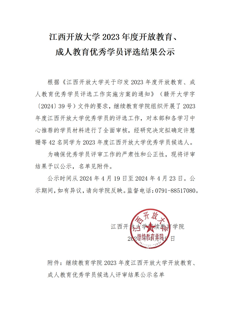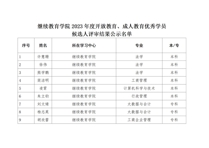 必赢76net线路官网2023年度开放教育、 成人教育优秀学员评选结果公示
