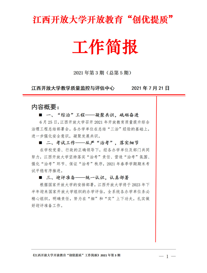必赢76net线路官网开放教育“创优提质”工作简报 2021年第3期(总第5期)