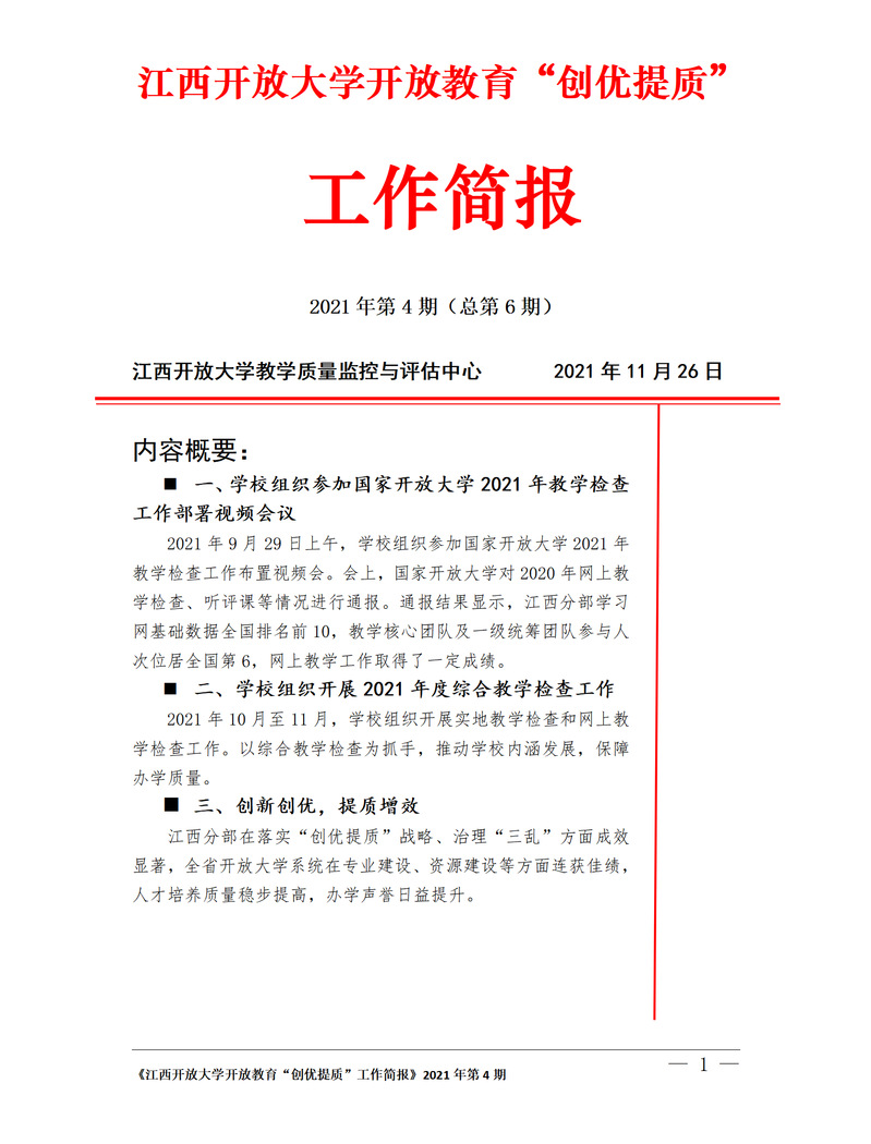 必赢76net线路官网开放教育“创优提质”工作简报 2021年第4期(总第6期)