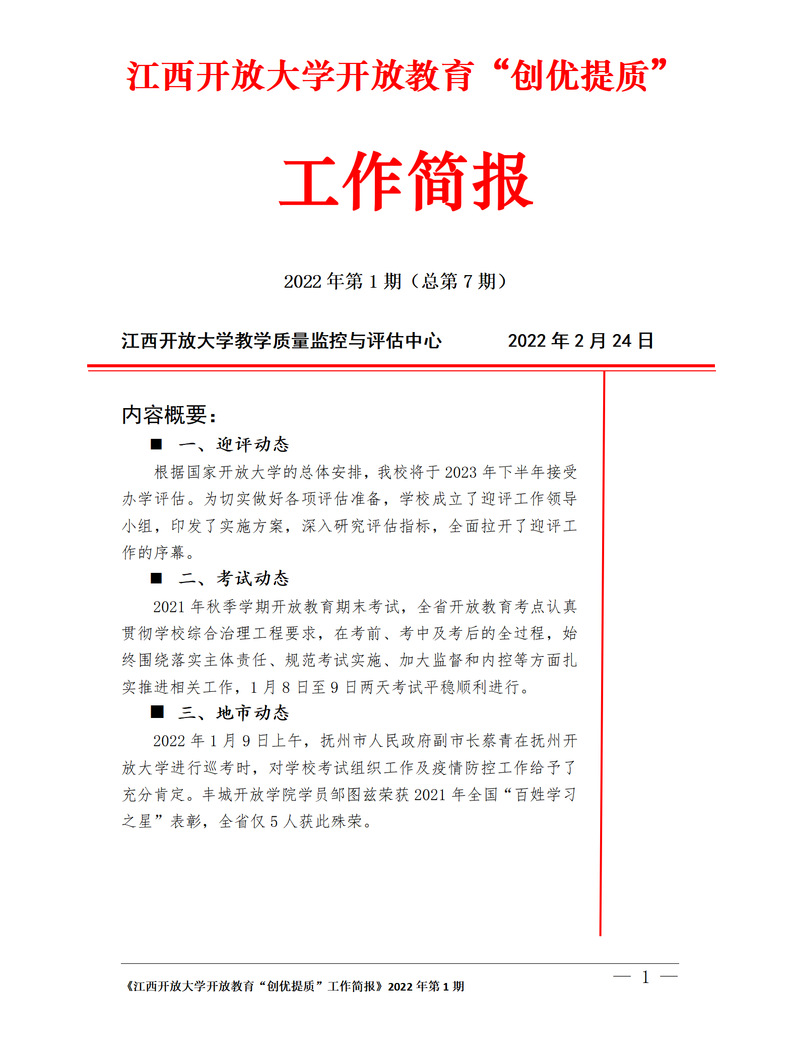 必赢76net线路官网开放教育“创优提质”工作简报 2022年第1期(总第7期)