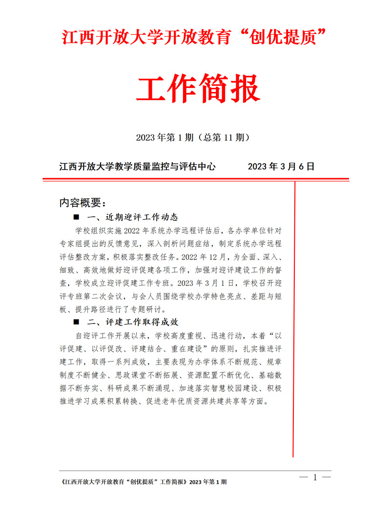必赢76net线路官网开放教育“创优提质”工作简报2023年第1期(总第11期)