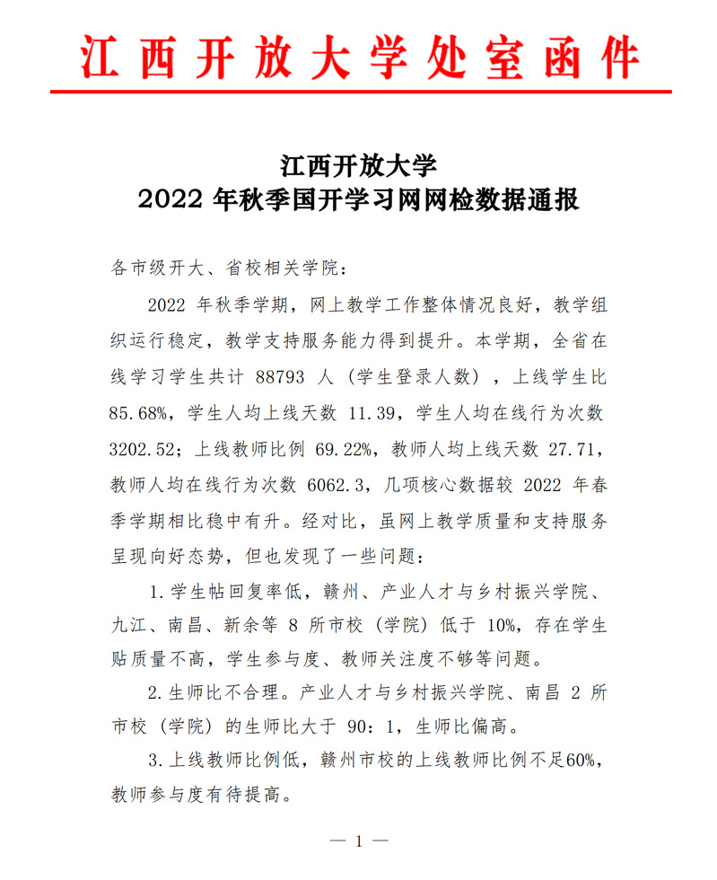 【网检数据】必赢76net线路官网2022年秋季学期国开学习网网检数据通报