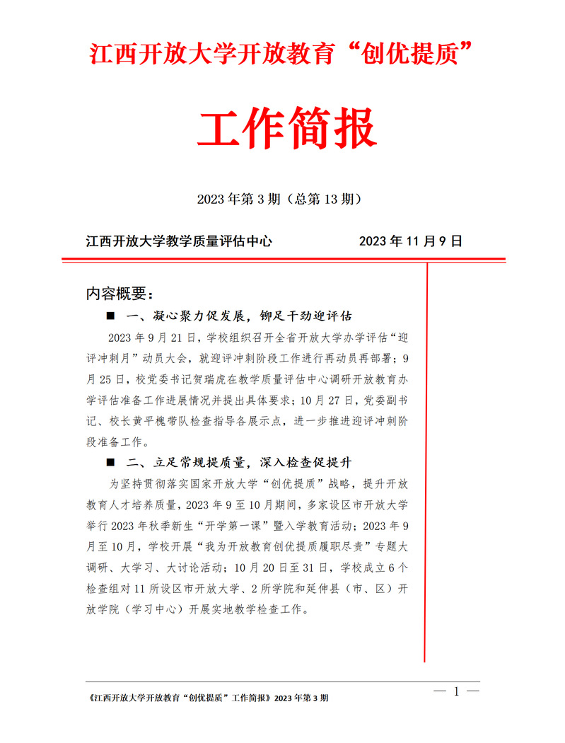 必赢76net线路官网开放教育“创优提质”工作简报2023年第3期(总第13期)