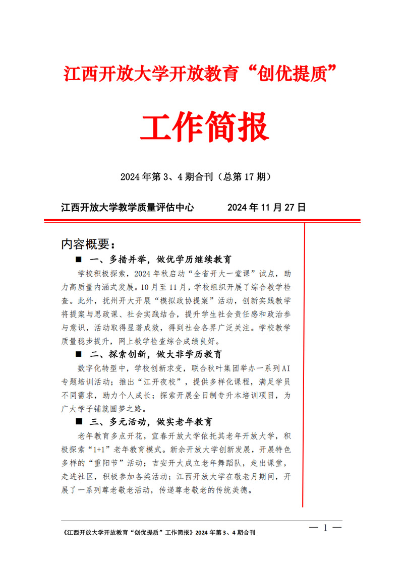 必赢76net线路官网开放教育“创优提质”工作简报2024年第3、4期合刊(总第17期)