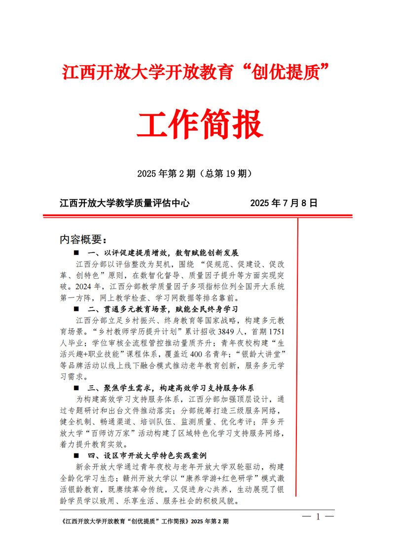 必赢76net线路官网开放教育“创优提质”工作简报2025年第2期(总第19期)