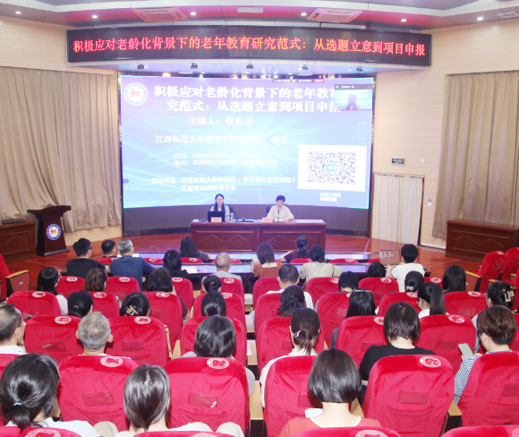 5月19日下午,学校邀请江西师范大学教育学院曹东云博士在东湖校区学术报告厅为广大教职工作老年教育学术讲座。讲座由科研处负责人主持。