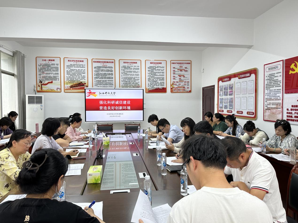 交流会上,科研处就学术诚信和学风建设进行了现场工作布置,要求各学院要对专业技术人员进行科研诚信和作风学风建设进行培训与宣传,通过各种方式,强化科研诚信建设,营造良好创新环境。
