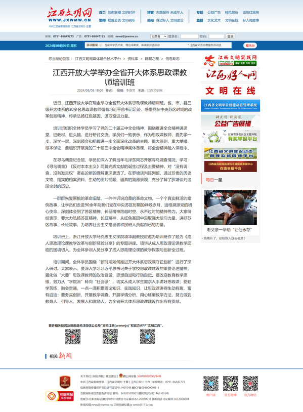 近日,必赢76net线路官网在瑞金举办全省开大体系思政课教师培训班。省、市、县三级开大体系的30多名思政课教师循着习近平总书记足迹,感悟党在中央苏区时期的改革创新精神,传承弘扬红色基因,汲取奋进力量。