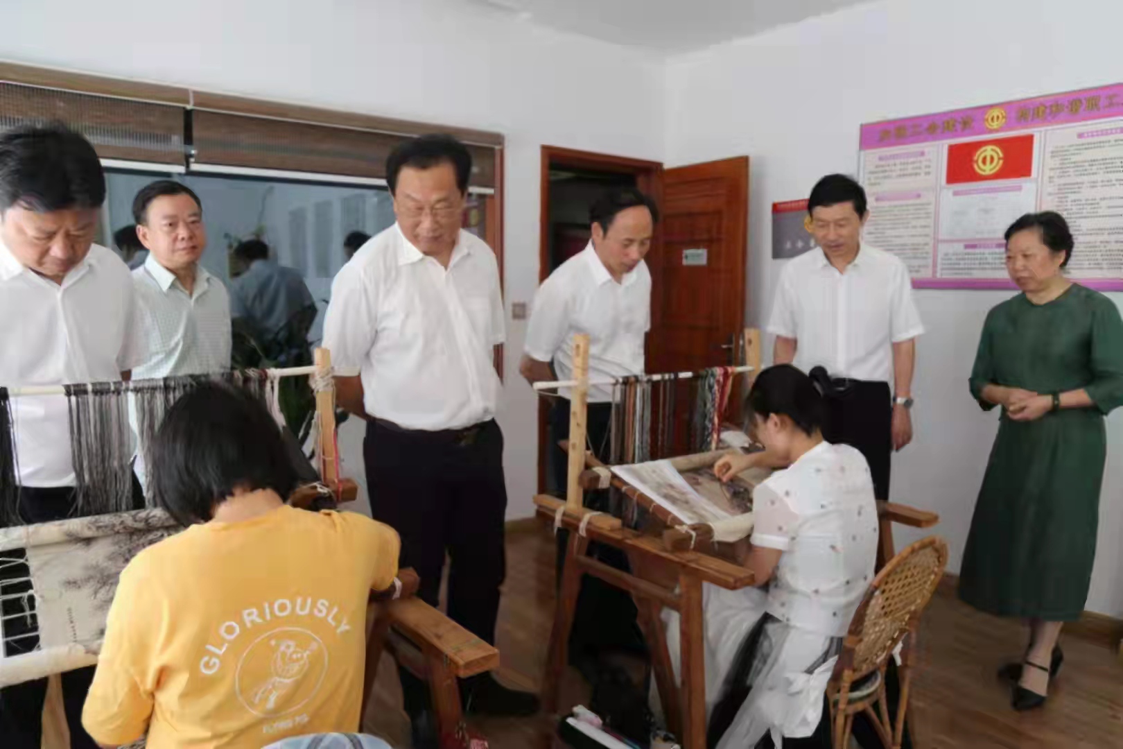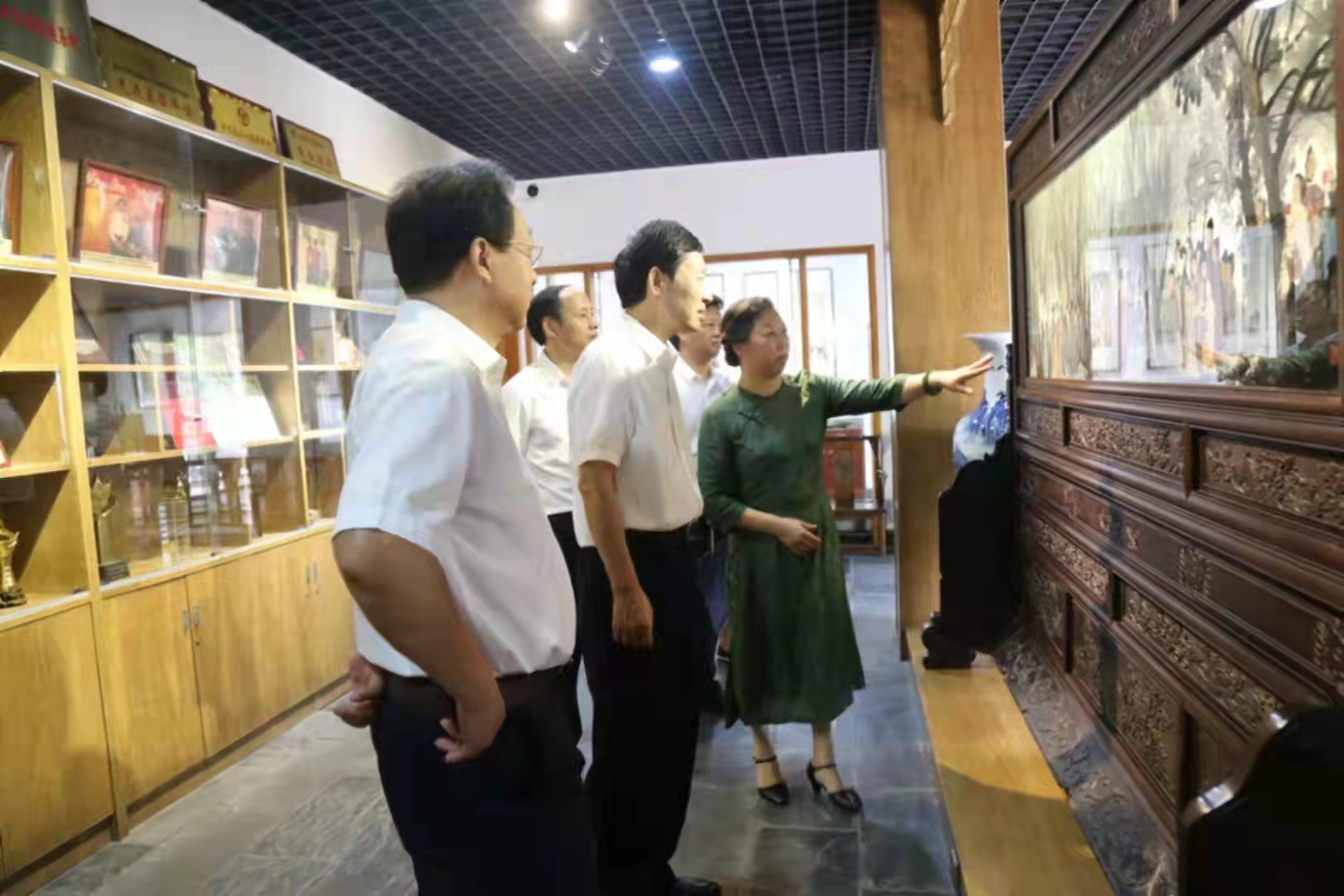 9月3日,必赢76net线路官网党委书记易小明、副校长刘平等一行参观考察新余夏布绣博物馆。新余开放大学副校长梁云森等陪同考察。
