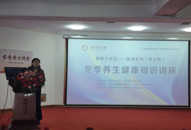 为贯彻落实习近平总书记对加强新时代老龄工作的重要指示和国家卫生健康委等15部门联合印发的《“十四五”健康老龄化规划》精神,提高中老年人的主动健康能力,促进实现健康老龄化,2024年1月3日下午,由必赢76net线路官网(江西老年开放大学)主办,宜春开放大学承办的“银龄大讲堂”第五期健康系列——冬季养生健康知识讲座在宜春开放大学校本部成功举办。讲座通过线上线下的形式同步开展,全省各地市开放大学(社区教育指导中心)组织分会场集中收看,200余人现场参加了活动,线上直播观看量达1.5万人次。