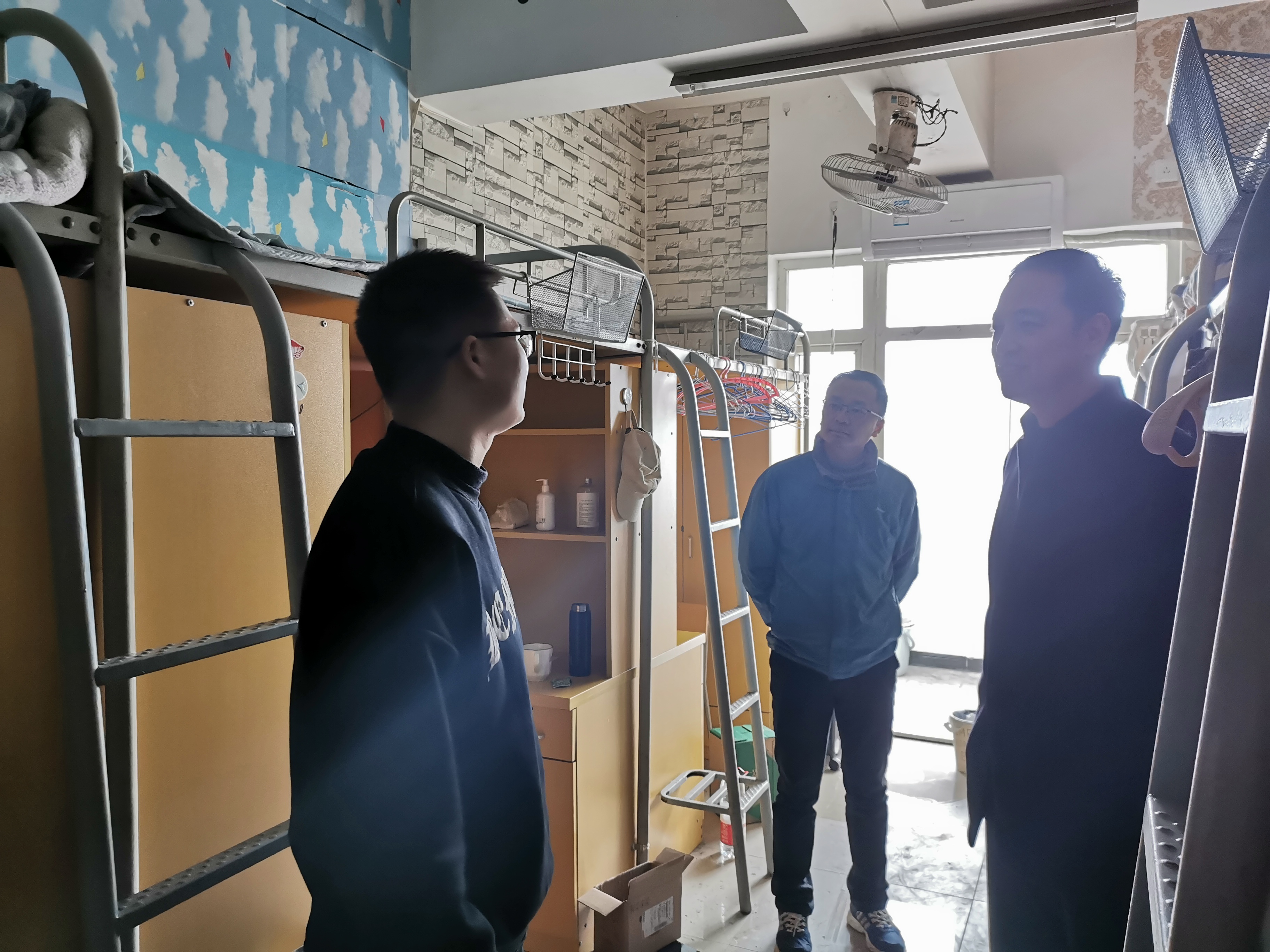 “同学叫什么名字?”“家乡在哪里?”“饮食还习惯吗?”“知道学校‘一站式’综合服务中心的服务事项吗?”每到一处,学院领导都围绕学生“急难愁盼”问题与同学们亲切交谈,认真聆听学生心声,详细询问同学们的家庭情况、寒假生活、身体状况等。“成才之路就在脚下,要靠我们自己走”,叮嘱同学们要培养良好的学习生活习惯,注重习惯养成,营造积极向上、文明健康的宿舍文化,同时勉励同学们要做好人生规划,珍惜校园时光,学以致用,学做真人。院领导还特别叮嘱辅导员,“育人的根本在于立德”,要促进教育公平,多关心家庭经济困难的同学,做到“精准资助”,做青年的知心人和引路人,让每一位学生都享有人生出彩的机会。