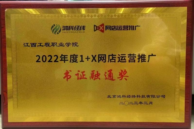 近日,江西省1+X网店运营推广联盟在景德镇召开了江西省1+X网店运营推广“书证融通、产教融合”的会议,并对在2022年1+X网店运营推广试点的推广及考核组织工作中表现优异的先进院校进行集中表彰,数字经济学院在2022年1+X网店运营推广工作中表现卓越、成绩突出,被授予“书证融通奖”。