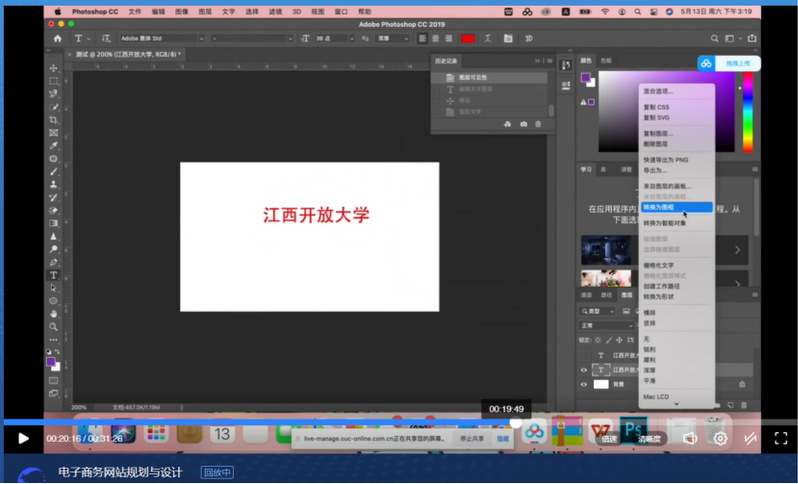 在课程思政实施方面,课程网络教学实施团队积极引入实际案例教学,激发学生学习兴趣。将校园文化、江西地域文化融入直播教学内容,培养爱校园、爱家乡的情怀。如《电子商务网站规划与设计》网络教学实施团队在讲解“网页图片设计”时,以必赢76net线路官网校徽设计为例,向学生讲授图片设计软件应用、色彩搭配、图形构建等知识要点。