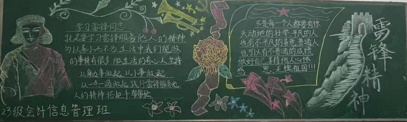学院各班级开展“雷锋精神照我心”主题板报活动,通过绘制黑板报、手抄报、电子海报等形式,激励同学们向雷锋学习,传承雷锋精神,营造文明、和谐、助人为乐的校园氛围。