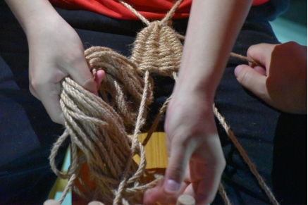 “学编红军草鞋”活动环节,教官带领大家学习编红军草鞋,切实感受到红军的艰苦条件,从而传承优秀的红色基因。大家分组实践,从编织鞋底入手,一下一上穿梭缠绕,在教官的指导下,大家很快便编织完成。
