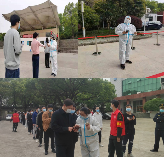 人武系教学干事周琼华说:“我是党员,必须上。我时刻铭记共产党员的初心和使命,能为学院尽一些绵薄之力,发挥党员先锋模范作用,让党徽在战“疫”之中熠熠生辉。”24日早上6点,克服家庭的困难和身体的不适,周老师早早地来到了校园,又开始了第四轮核酸信息采集的服务保障工作。