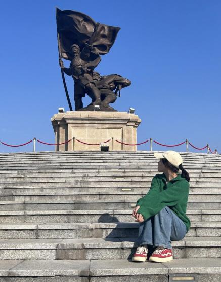 在课余的下午,我来到了南昌建军雕塑广场,它临赣江边而建,船只在江面行驶,几组生动形象的铜雕,让我感觉自己瞬间穿越至战火纷飞的实景中,与他们对话,和他们共同奋战,向他们致敬!——22 电商 1 班 吴婷霞