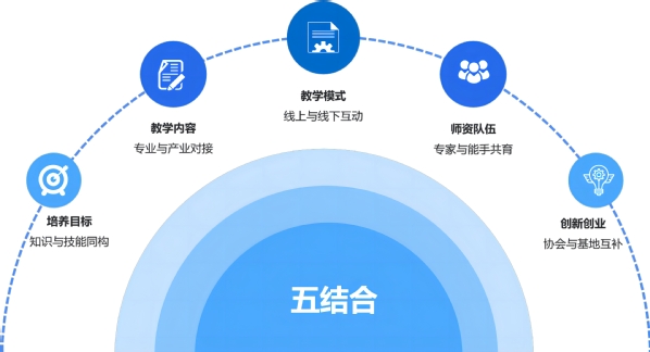 依托该模式,必赢76net线路官网以平台、技术、服务、资源为纽带,推动平台链、人才链、产业链、生态链、教育链“五链”融合,为人才培养、产业服务、项目孵化、创新创业、产业技术研究等提供平台支撑,完善“头部院校+龙头企业”的产教融合特色模式。